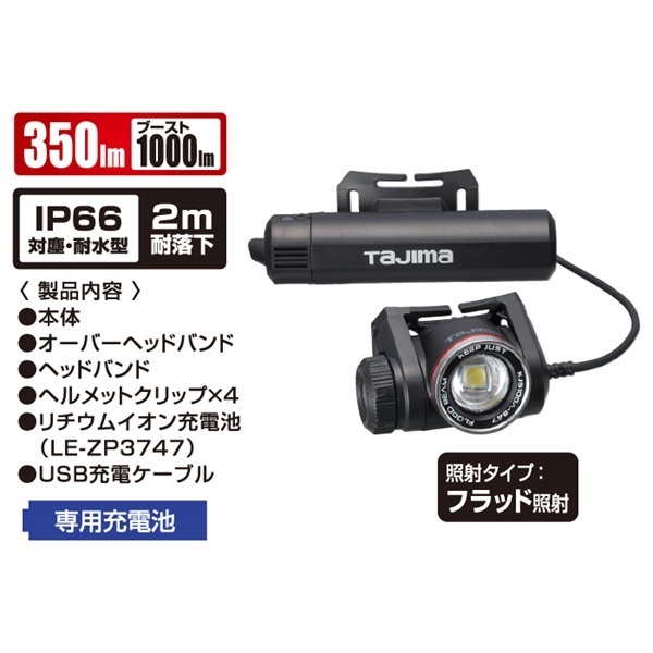 付属品:オーバーヘッドバンド・ヘッドバンド・ヘルメットクリップ×4個・リチウムイオン充電池(LE-ZP3747)・USB充電ケーブル