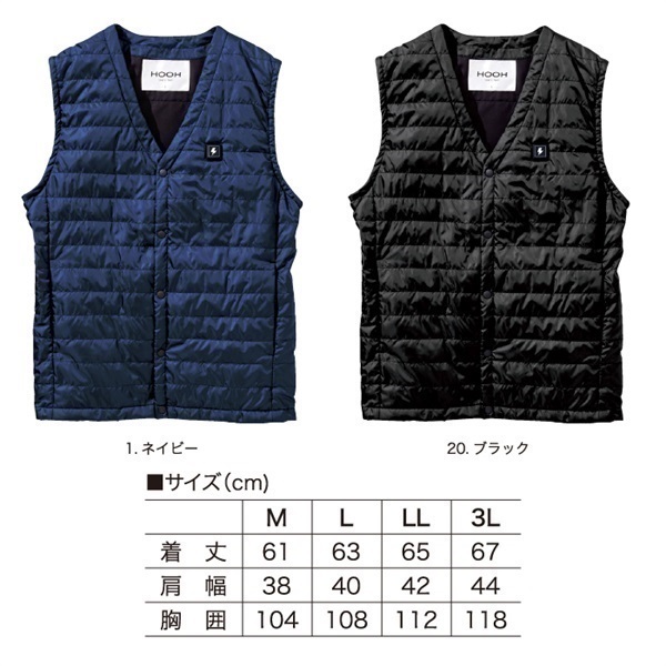 ●仕様:襟元背中ヒーター内蔵、両脇ポケット、左側内側ファスナー付きバッテリーポケット、左側内側ポケットコード通し